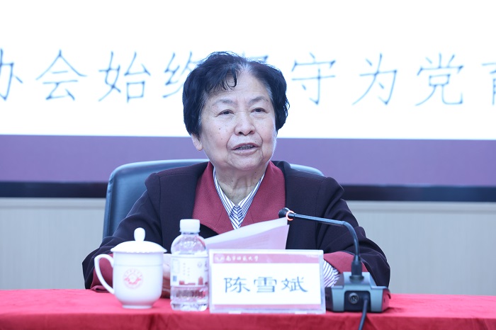 陈雪斌代表广西老教授协会为大会致贺词。她在贺词中充分肯定了南宁师范大学老教授协会过往的工作成效,希望协会以此次换届为契机,团结带领全体会员大力弘扬教育家精神,在人才培养、学术传承、社会服务等领域主动担当、展现新作为,持续筑牢老教授的“温馨家园”,为广西高等教育高质量发展和教育强国建设贡献更多智慧与力量。